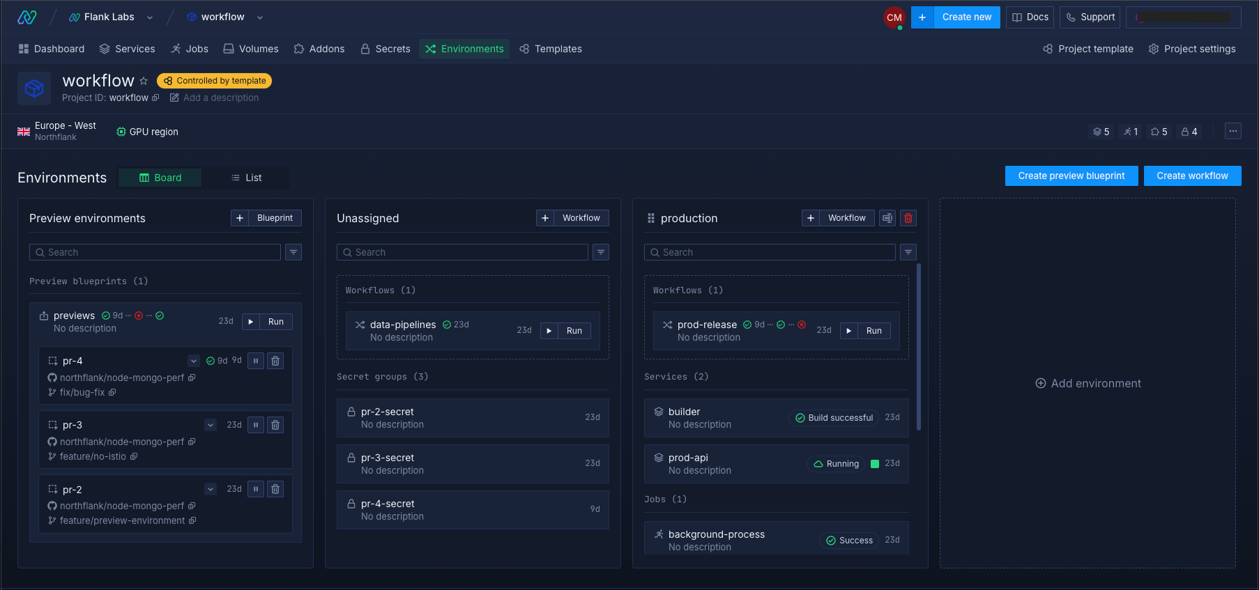 Environments on Northflank allow you to automate your release process and preview changes in isolated environments.