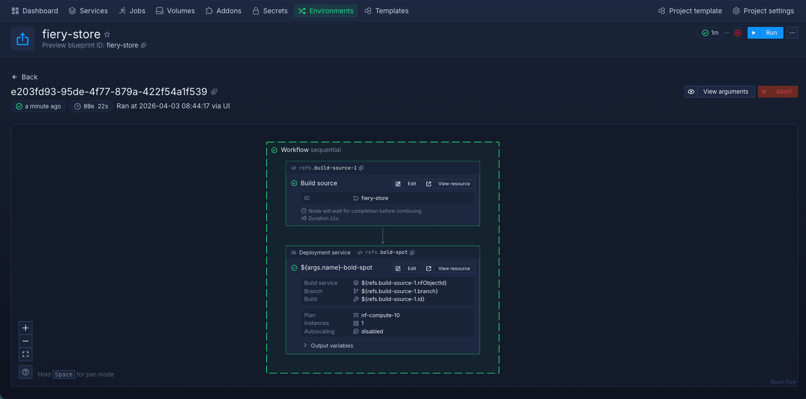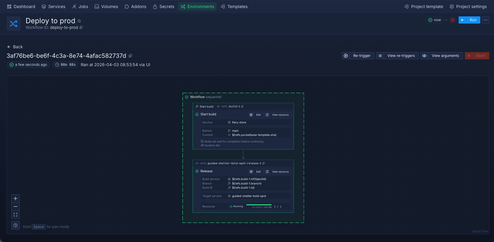 After you have configured the workflow, you can manually test run it and Northflank will execute the workflow as you have specified it.