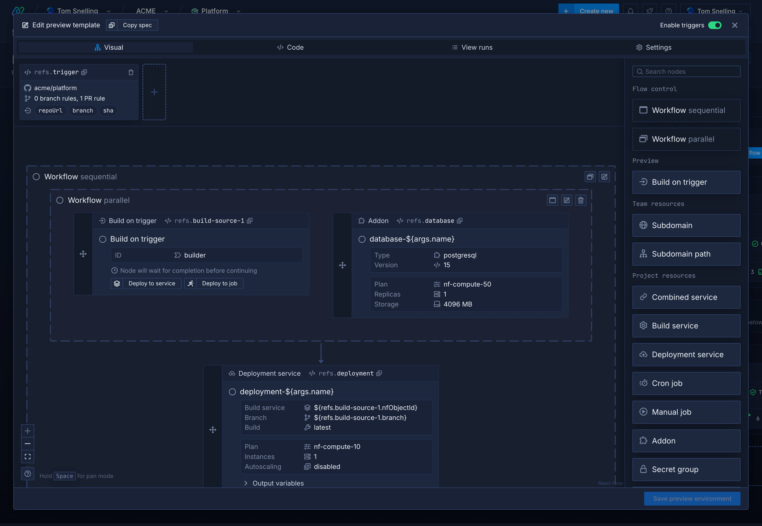 Advanced platform features for managing complexity at scale. IaC templates with OpenTofu, global secrets, org-level controls, and white labeling.