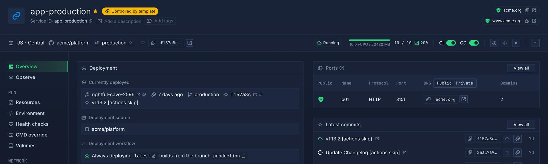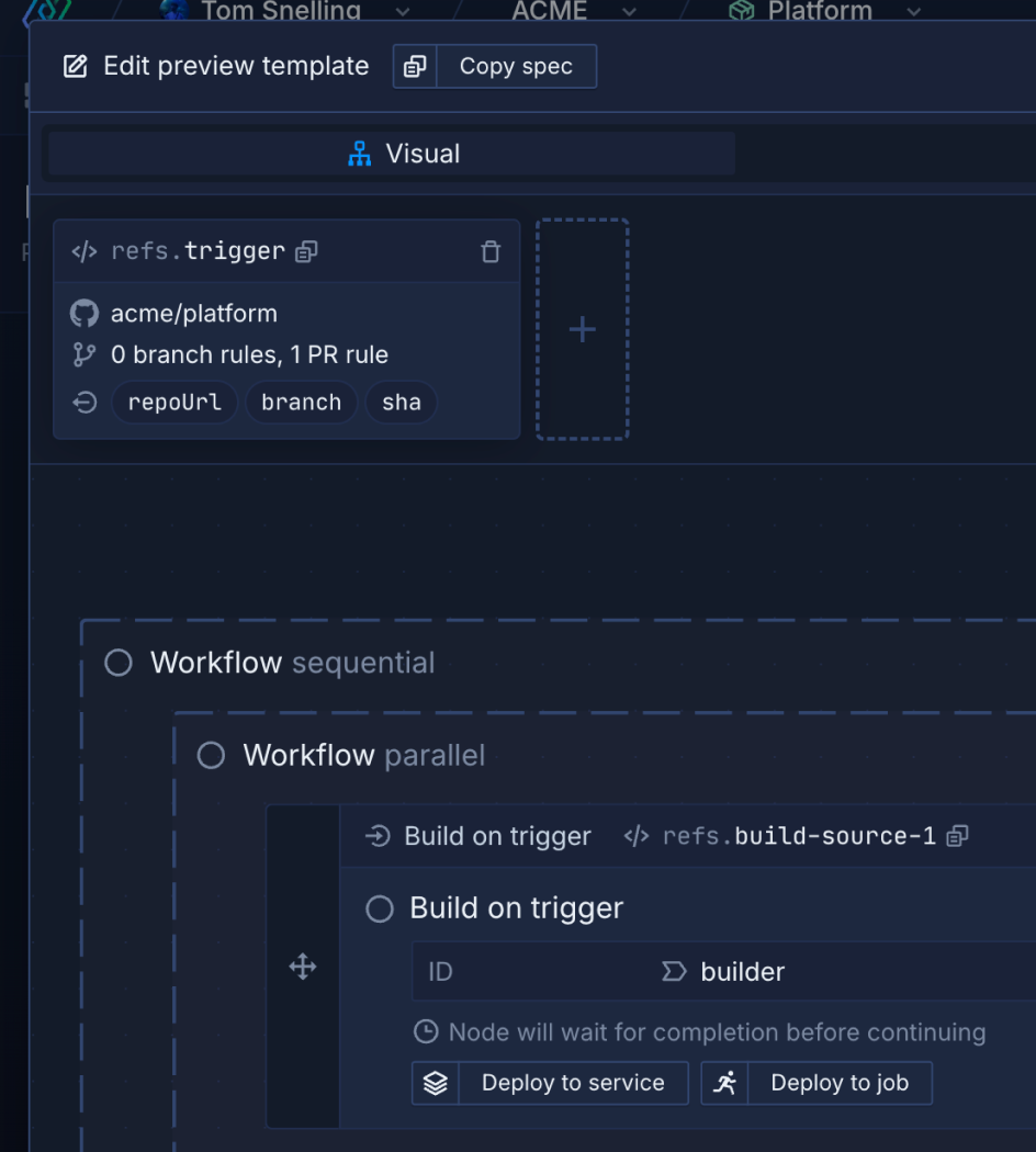 Use Northflank’s intuitive UI or IaC templates to manage your preview environments. Reference version control metadata and automate repetitive tasks for better DevEx.Craft your workflows, not your workflow tool